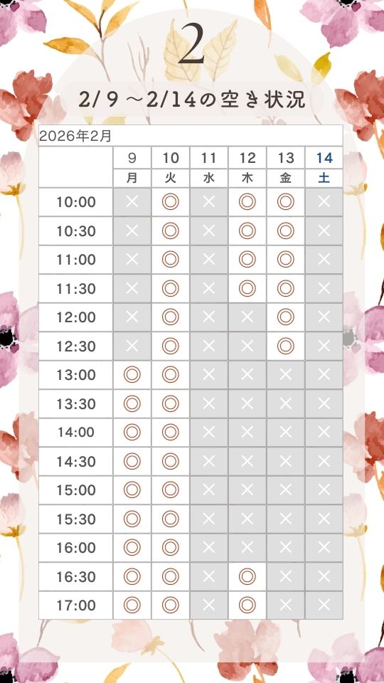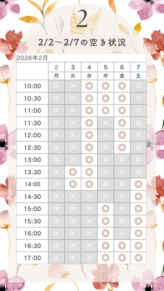 2月の空き状況(2/3更新)